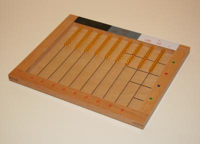 The Flat Bead Frame activities represent the final step in the transition to abstraction in multiplication.
