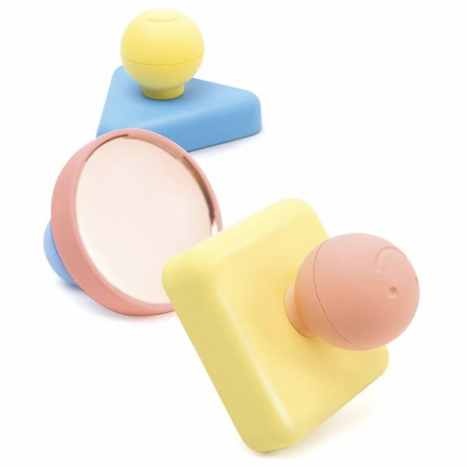 Under each shape, there is a child-safe mirror. Each mirror offers a slightly different visual effect, inviting curiosity, repetition, and independent exploration.