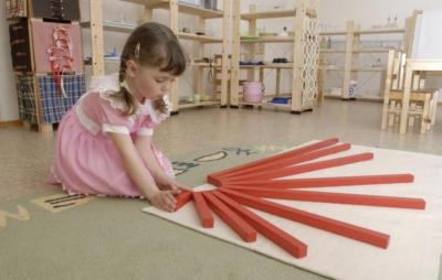By holding the ends of the rods with two hands, the material is designed to give the child a sense of long and short.